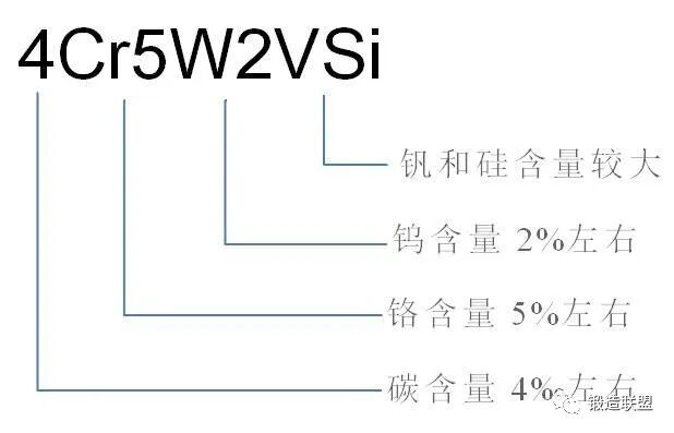 说明:合金钢多采用阿拉伯数字和合金元素的符号表示,其中阿拉伯数字表示碳含量的万分数。其他元素符号代表该元素在该合金中含量较高,含量小于150‱时,仅标明元素,不标含量。