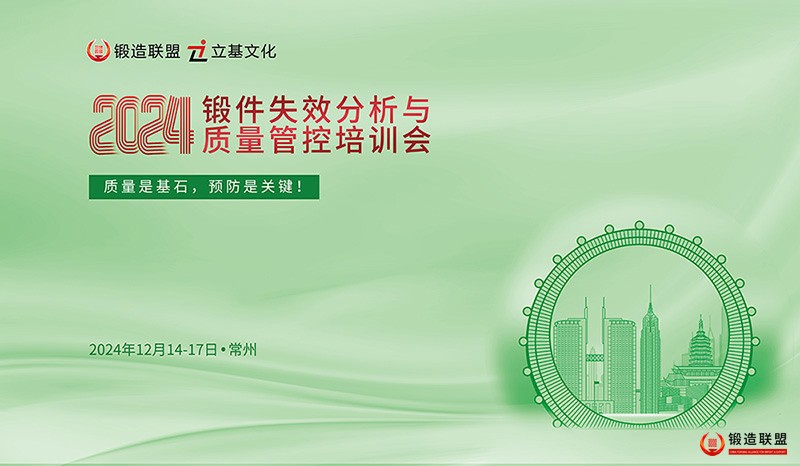 为了管控锻件质量,优化工艺设计、改进制造工艺、理清明确责任,中国锻造进出口联盟和北京立基文化传播有限责任公司计划于2024年12月14-17日举办“2024锻件失效分析与质量管控培训会”。该培训会将从工艺规程、检验检测、金相分析、锻件失效、质量分析、无损及有损分析、体系管理、生产手段、工序控制、可追溯控制等内容详细分析锻件失效和质量控制的要点和诀窍。
