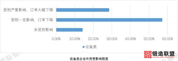 材料类出口企业外贸收到严重影响,33.33%的企业订单收到严重影响。较设备企业高4.76%。